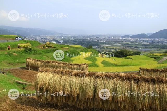 安曇野市・拾ヶ堰公園付近の田園風景(稲刈り)