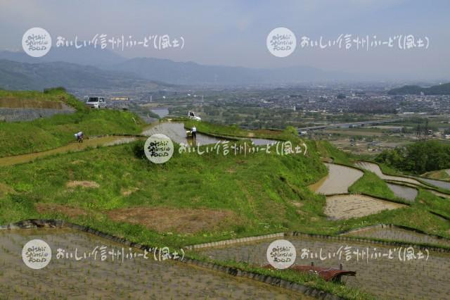 安曇野市・拾ヶ堰公園付近の田園風景(田植え)