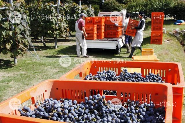 宮田村の醸造用ぶどう畑(収穫風景)