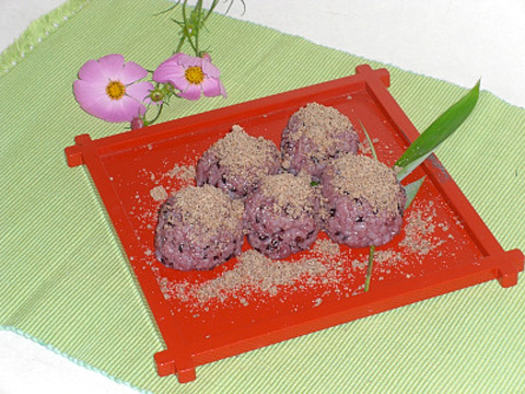 えごまはフライパンでいって、すりこぎでする。砂糖も入れてすっておく。